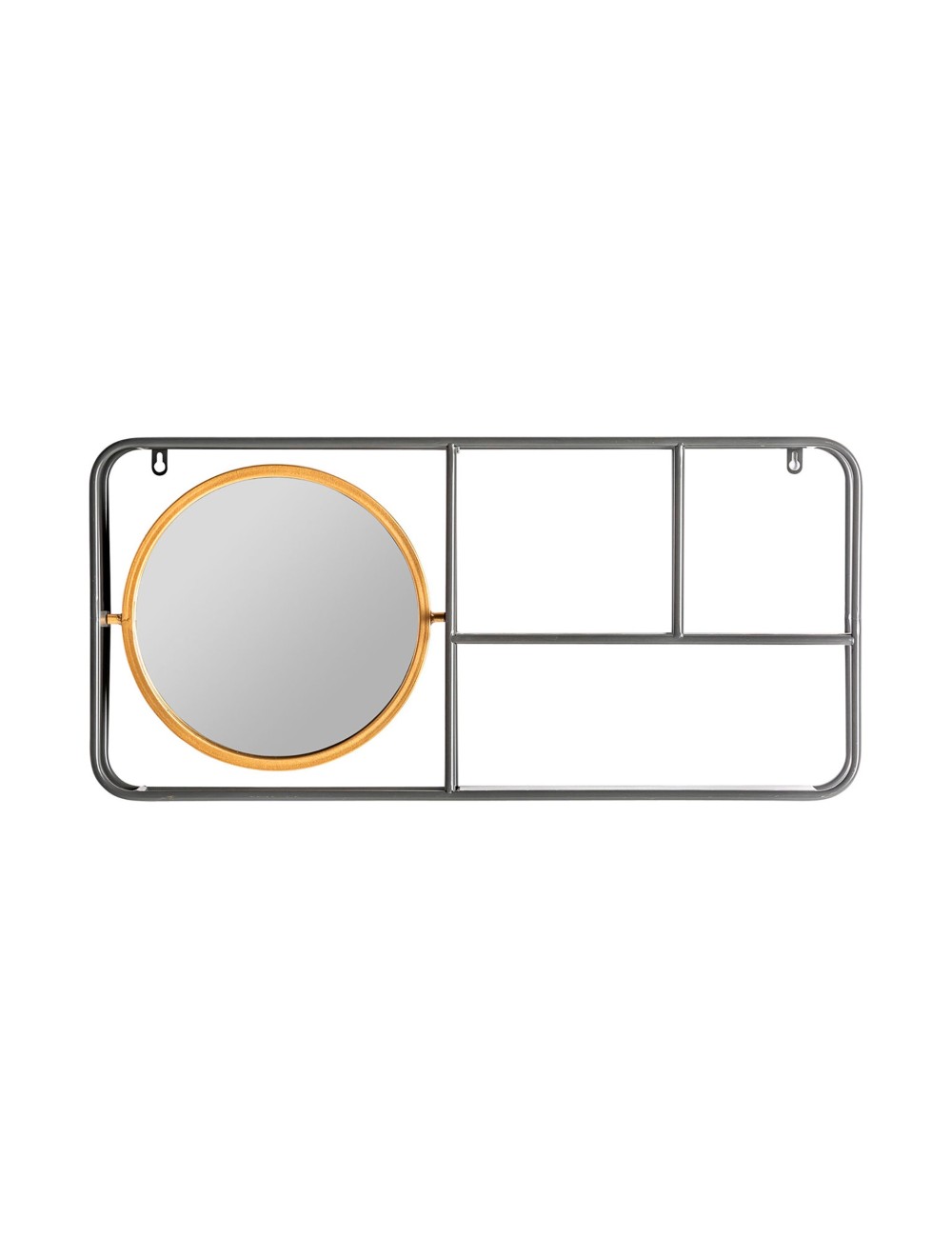 Espejo rectangular varese, en color gris/oro, de estilo industrial. Fabricado en hierro, combinado con espejo y madera dm.