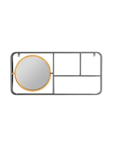 Espejo rectangular varese de estilo industrial, fabricado en hierro en color gris, combinado con espejo en color oro y madera dm.