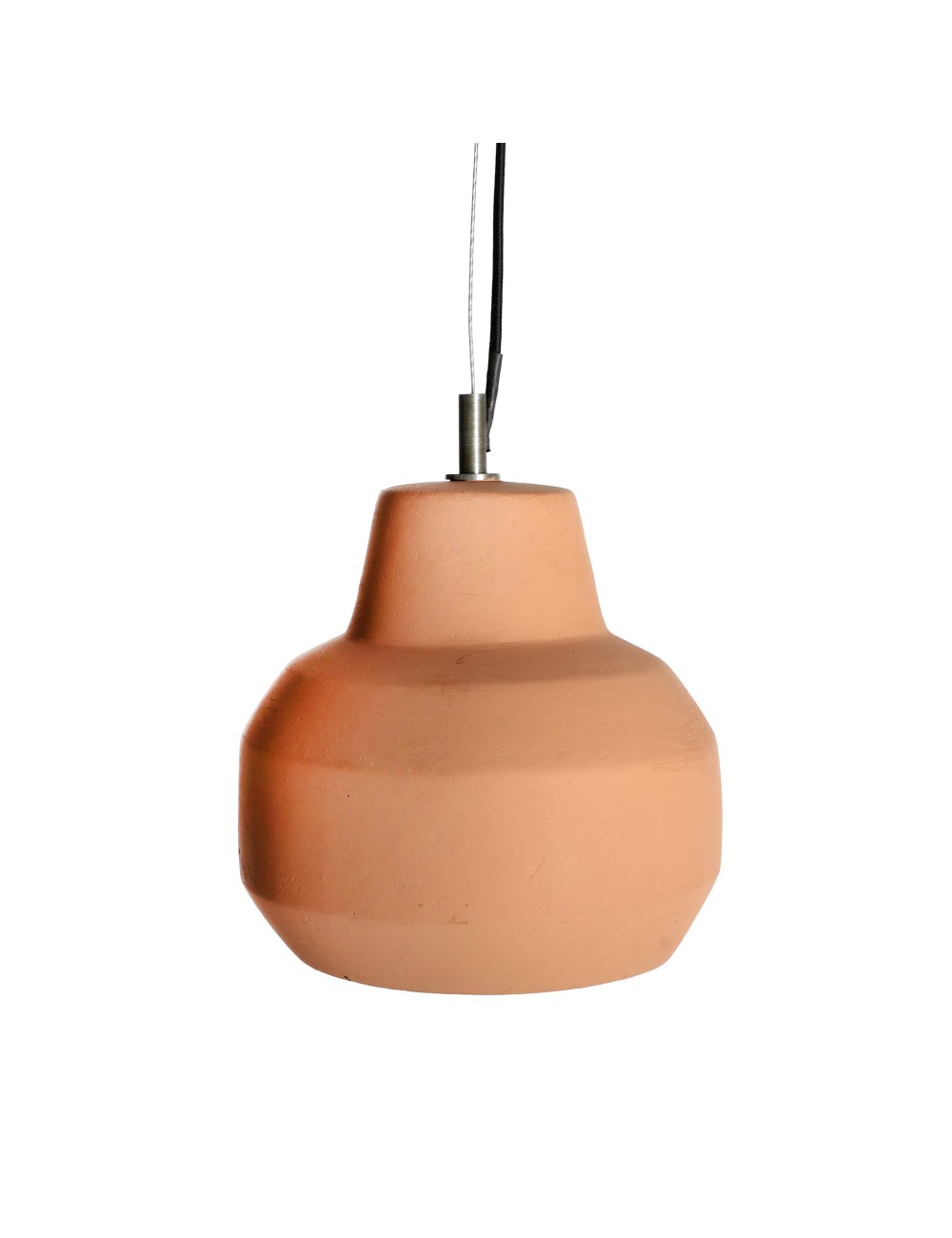 Lámpara de colgar redonda, en color marrón claro, de estilo vintage. Fabricado en terracota, combinado con latón.