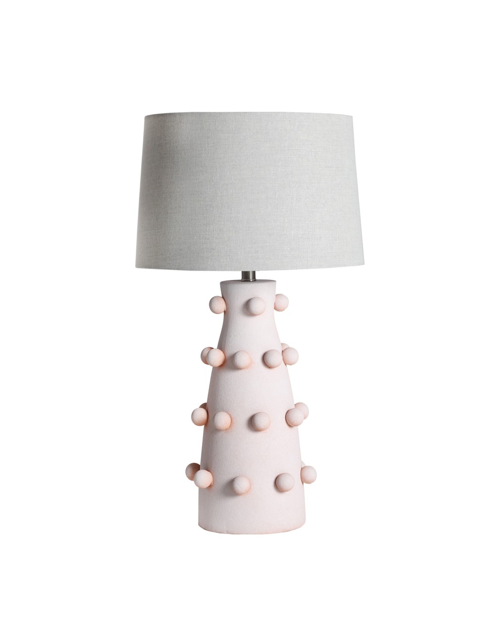 Lámpara de sobremesa rectangular judith, en color rosa palo, de estilo provenzal. Fabricado en cerámica, combinado con hierro y lino. Producto desmontable.