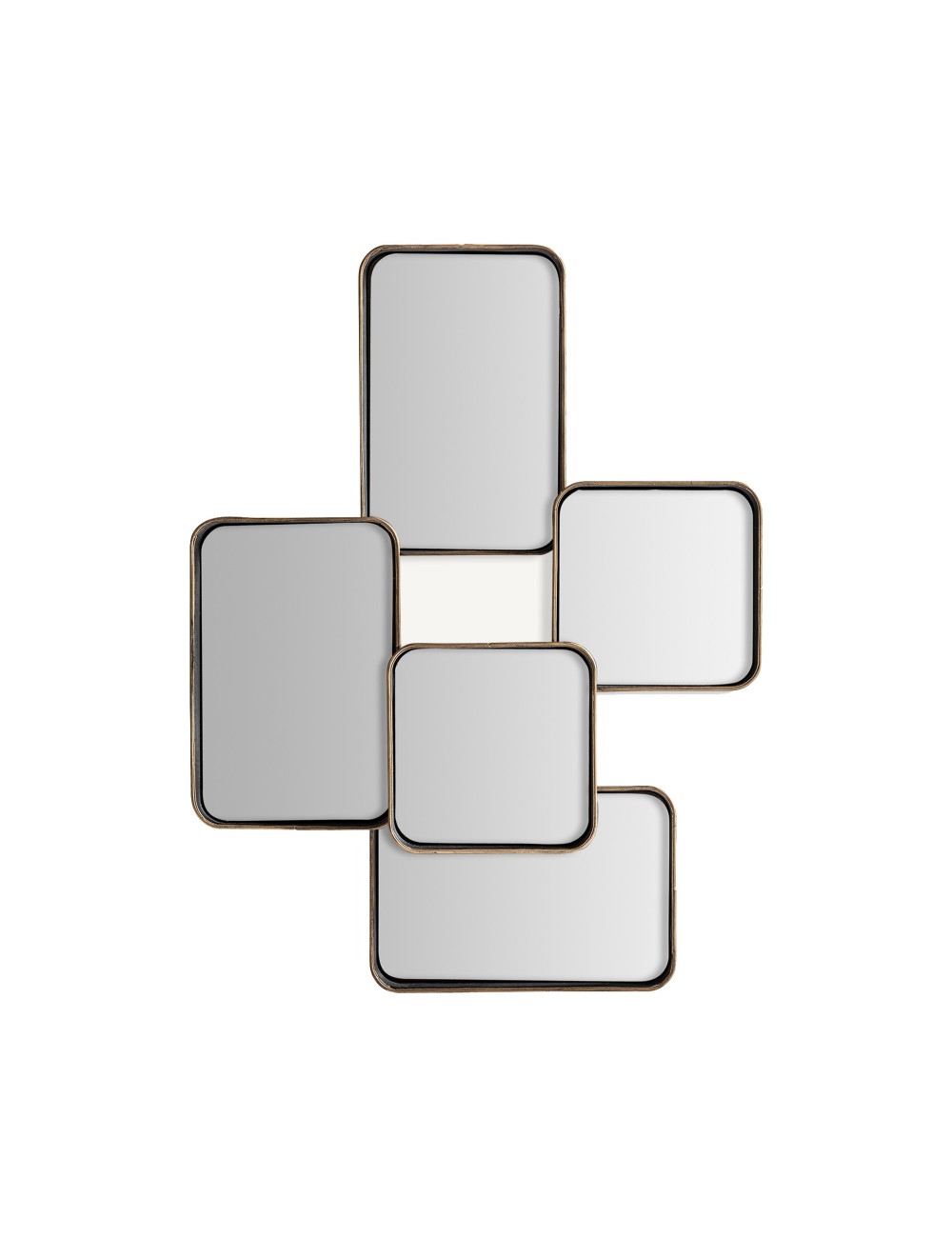 Espejo irregular reken, en color negro/oro viejo, de estilo vintage. Fabricado en hierro, combinado con espejo.