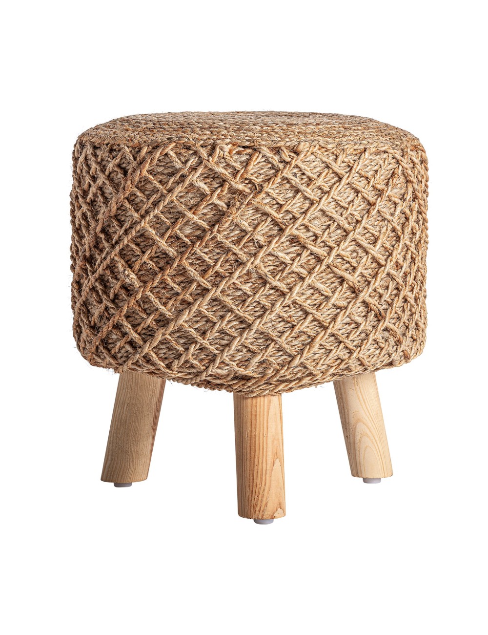 Reposapiés redondo gildeon, en color marrón, de estilo boho. Fabricado en yute, combinado con madera de mango y poliéster.