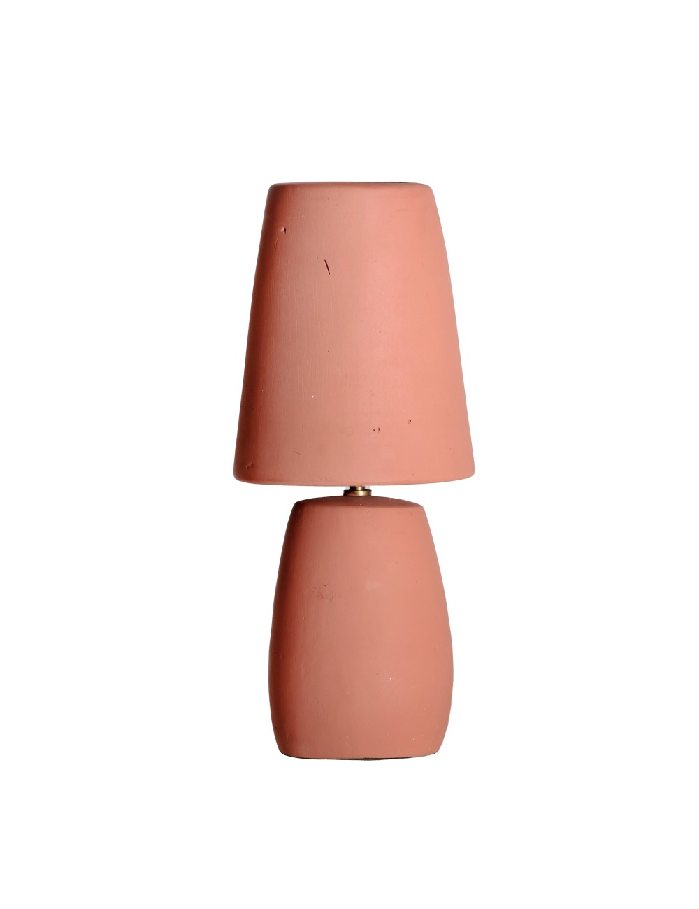 Lámpara de sobremesa redonda swahili, en color coral, de estilo ecléctico. Fabricado en terracota, combinado con latón. Producto desmontable. |