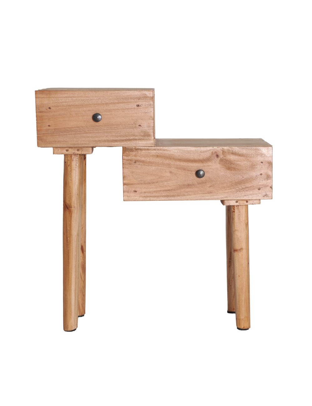 Mesita de noche irregular akviran, en color marrón envejecido, de estilo étnico. Fabricado en madera de mahogany. Producto desmontable.
