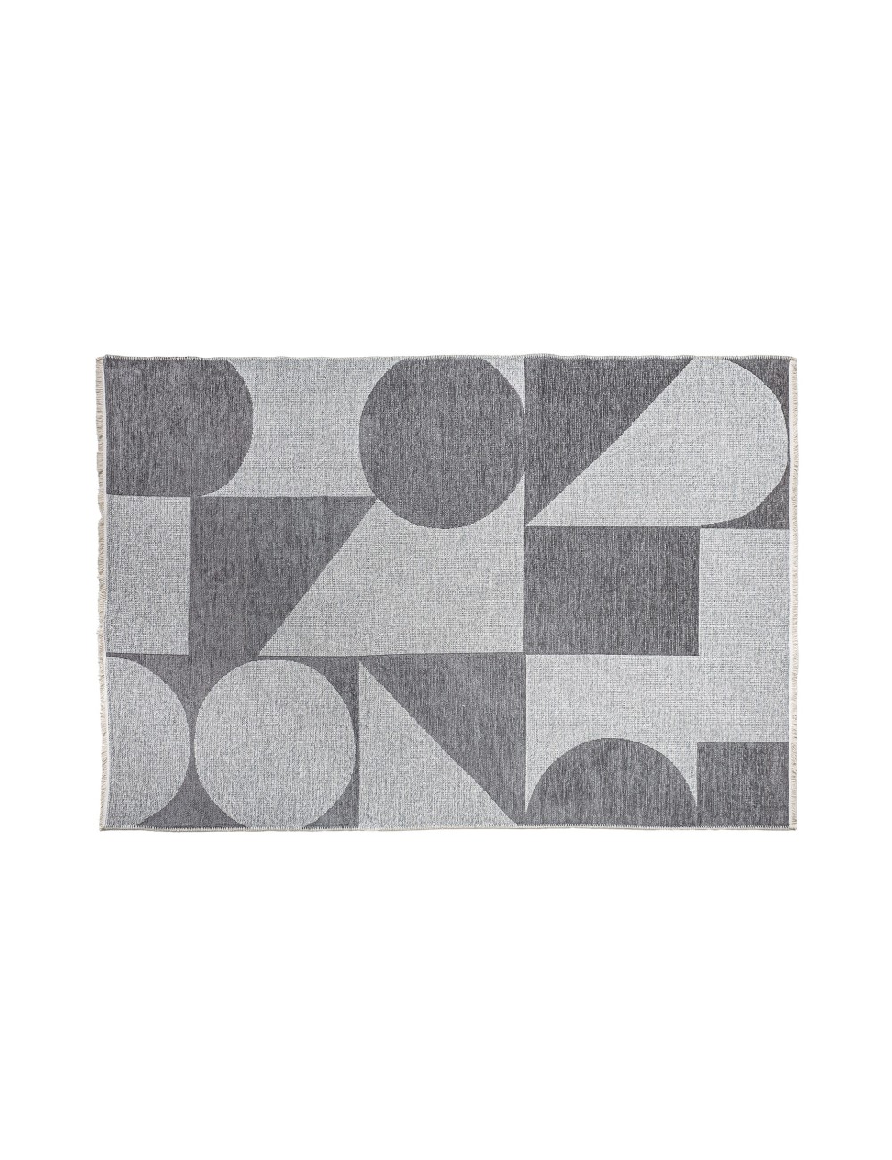 Alfombra rectangular camila, en color gris, de estilo contemporáneo. Fabricado en poliéster, combinado con algodón y acrílico.