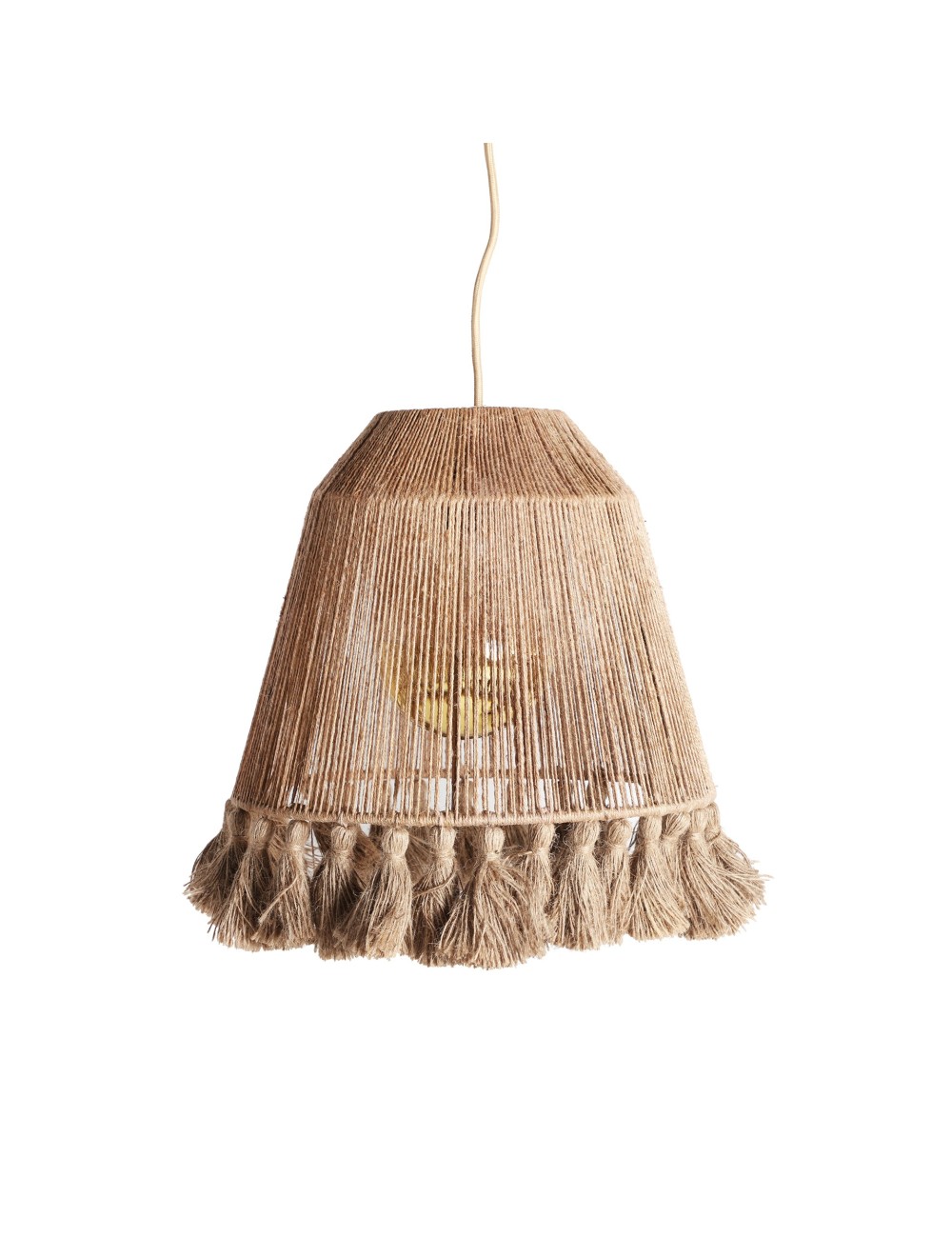 Lámpara de colgar cuadrada khed, en color marrón, de estilo boho. Fabricado en yute, combinado con hierro.
