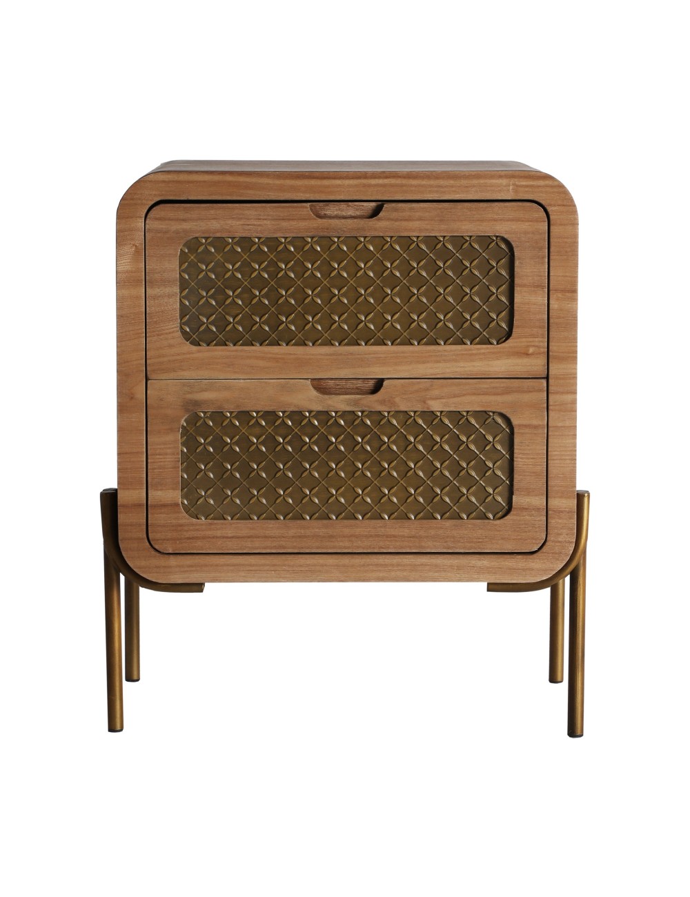 Mesita de noche cuadrado nevoy, en color marrón, de estilo vintage. Fabricado en madera de pino, combinado con aluminio. Producto desmontable.