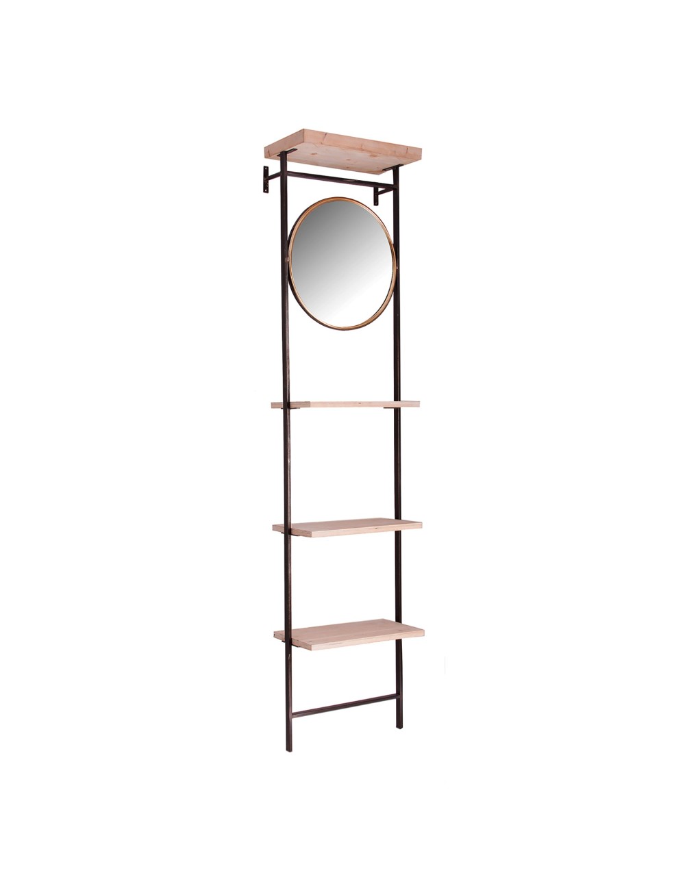 Estanteria rectangular wohlen, en color negro/oro viejo, de estilo industrial. Fabricado en hierro, combinado con madera de abeto y espejo.