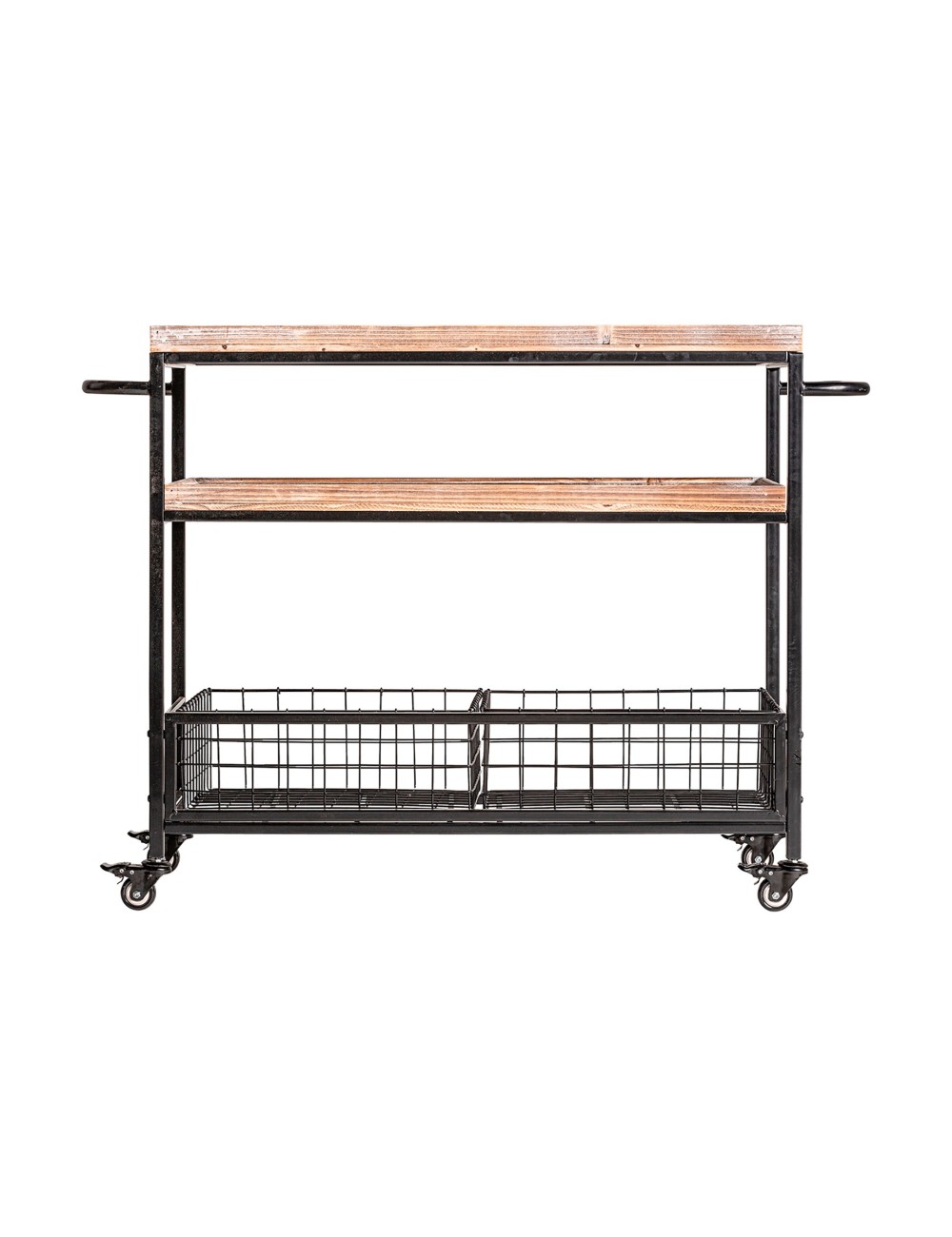 Camarera rectangular athy, en color gris/natural, de estilo industrial. Fabricado en hierro, combinado con madera de abeto. Producto desmontable.