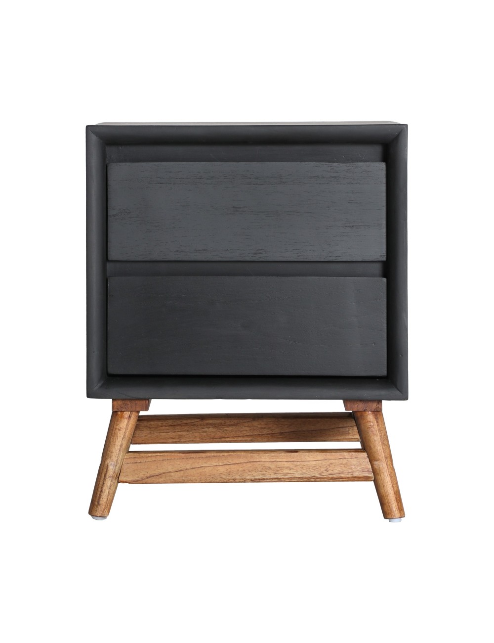 Mesita de noche thiers, en color negro/marrón, de estilo nórdico. Fabricado en madera mindi, combinado con madera contrachapada.