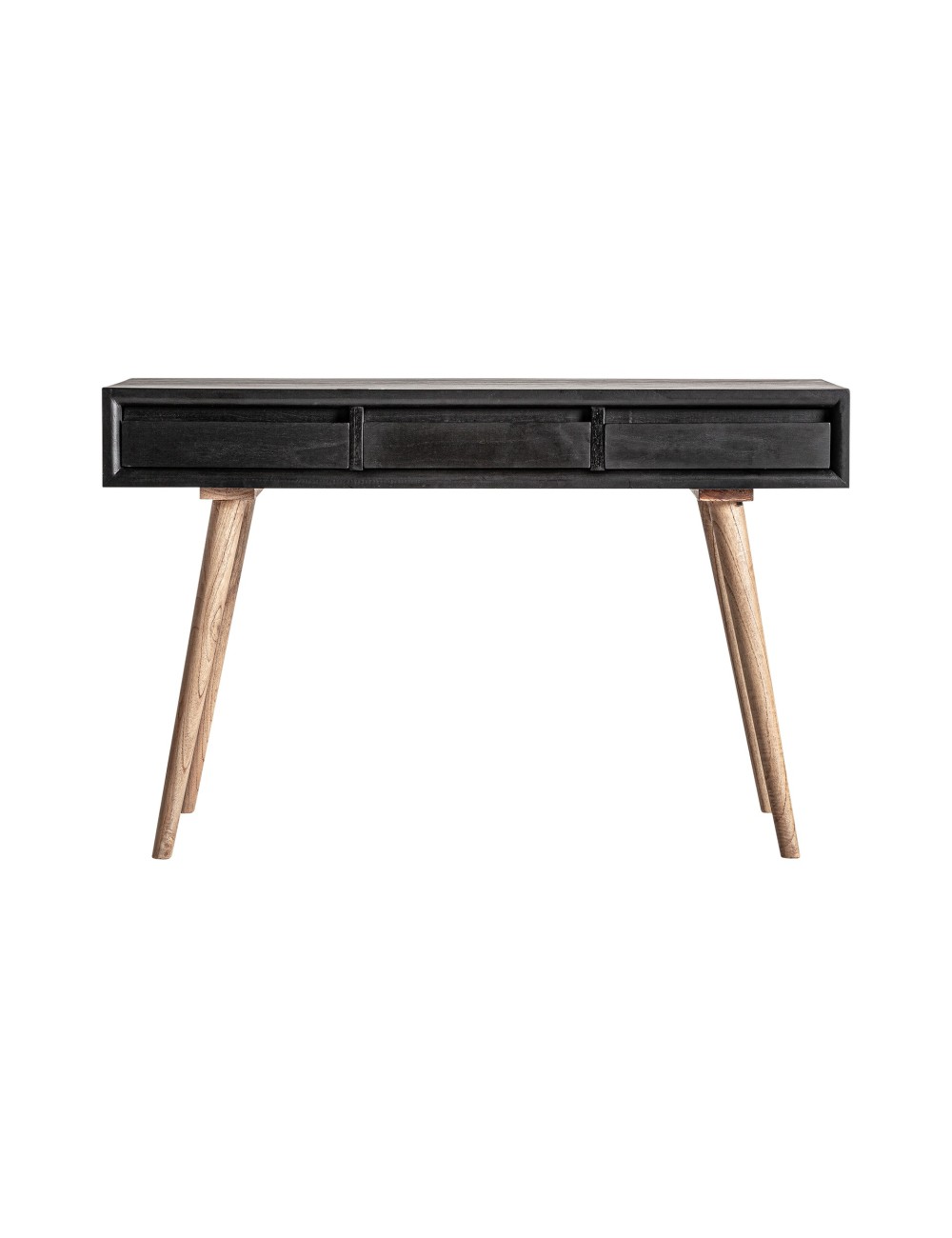 Consola thiers, en color negro/marrón, de estilo nórdico. Fabricado en madera mindi, combinado con madera contrachapada.
