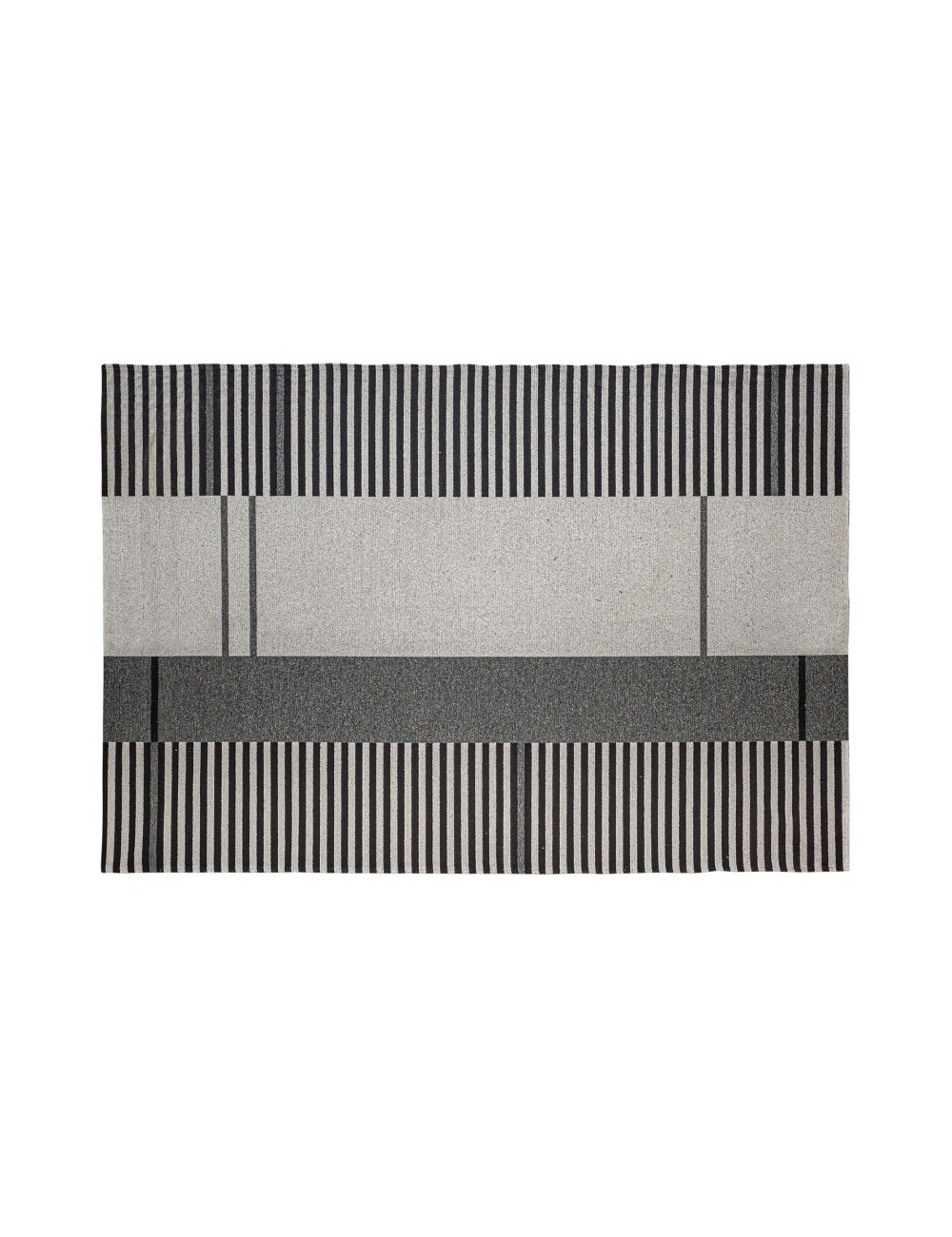 Alfombra jana, en color blanco/negro, de estilo contemporáneo. Fabricado en polipropileno reciclado, combinado con poliéster y algodón.