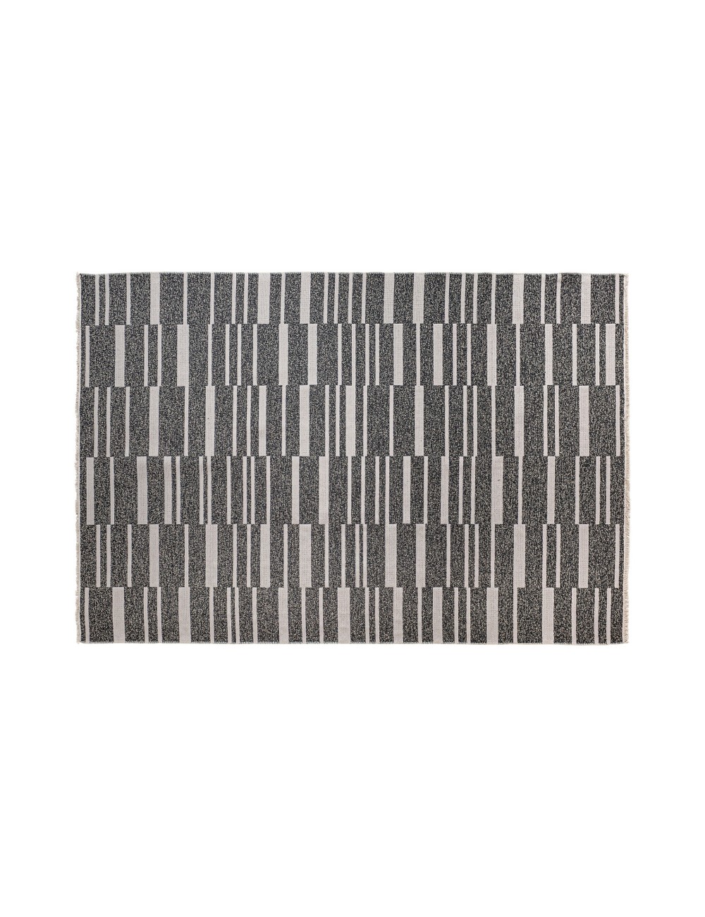 Alfombra celia, en color blanco/negro, de estilo contemporáneo. Fabricado en poliéster, combinado con algodón y acrílico.