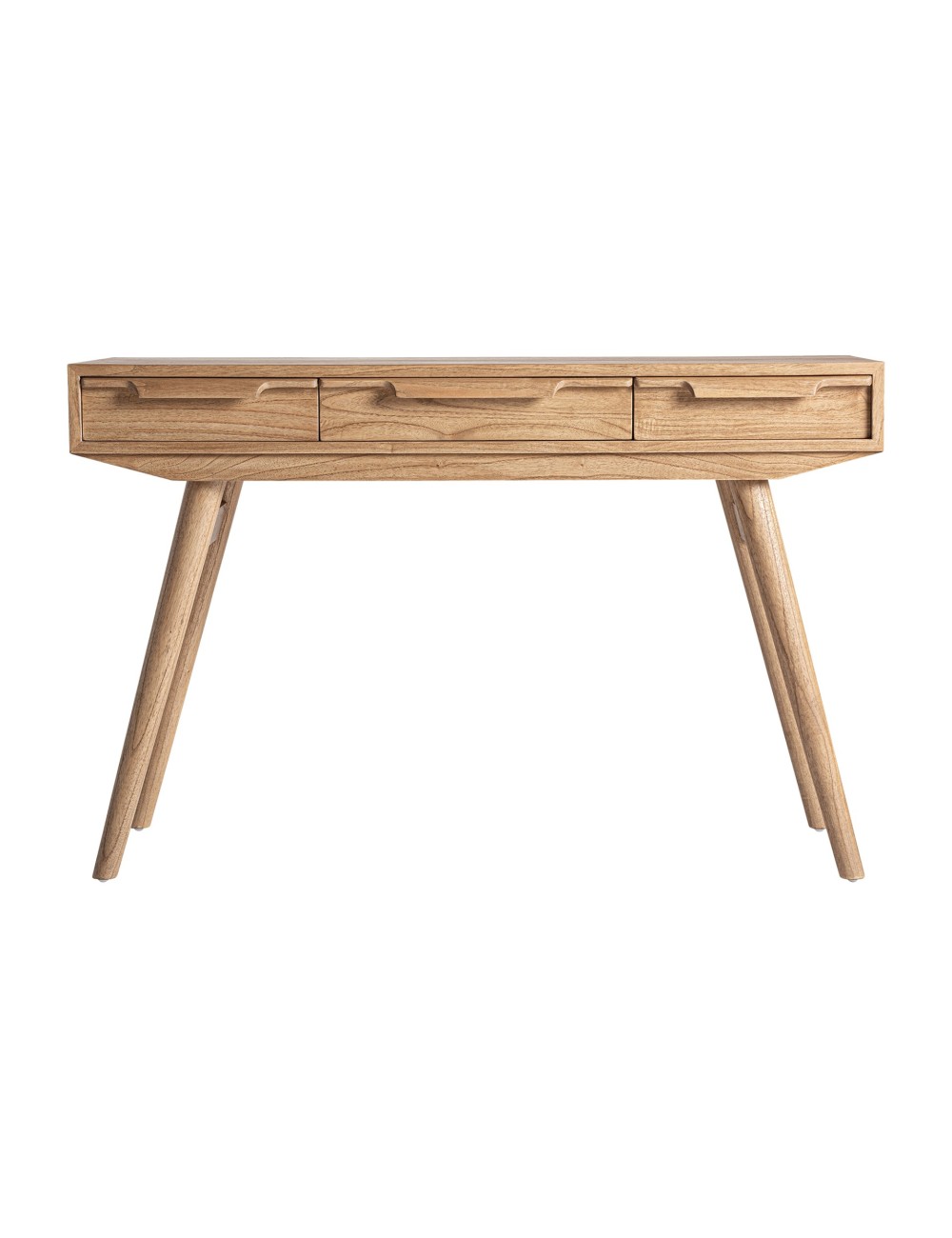 El Escritorio Nyry es una pieza de estilo nórdico que combina funcionalidad y elegancia. Fabricado en madera de mindi de alta calidad con un acabado en color natural, ofrece un espacio de trabajo cómodo y estilizado.