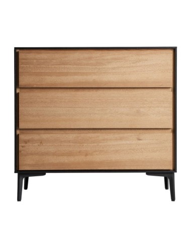 La Cómoda Brussa es una pieza de mobiliario de estilo contemporáneo que combina funcionalidad y diseño elegante. Fabricada en madera DM con acabado en color natural para los cajones y estructura en negro mate, se apoya sobre finas patas de hierro en color negro, aportando un toque moderno y sofisticado.