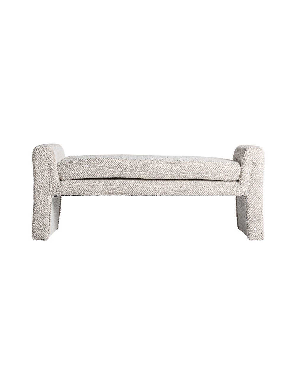 Banco rectangular izegem, en color blanco roto liso, de estilo art deco. Fabricado en algodón bouclé, combinado con acrílico y madera de caucho. Producto desenfundable. |