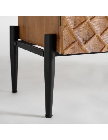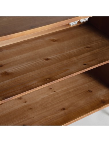 Aparador rectangular larvik, en color marrón, de estilo nórdico. Fabricado en madera de pino, combinado con ratán y madera dm. Producto desmontable.