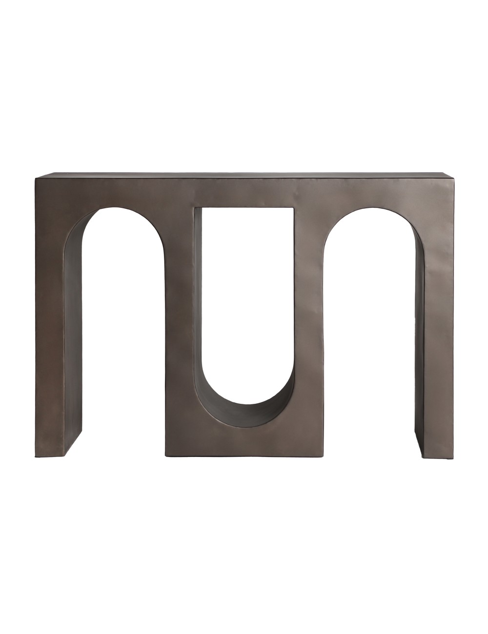 Consola irregular rethel, en color gris, de estilo contemporáneo. Fabricado en hierro.