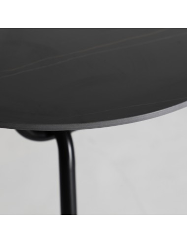 La Mesa de Comedor Tamasi es una pieza de mobiliario que destaca por su diseño elegante y materiales de alta calidad. Fabricada con una base de hierro y una tapa de piedra en color negro mate veteado, esta mesa aporta un toque sofisticado a cualquier espacio.