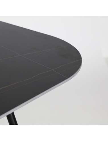 Mesa comedor rectangular tamasi, en color negro, de estilo vintage. Fabricado en piedra, combinado con hierro. Producto desmontable.