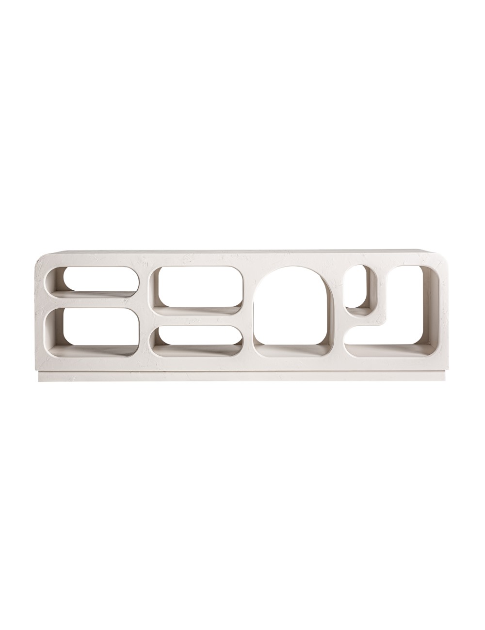 Mueble tv rectangular sulkava, en color blanco roto, de estilo contemporáneo. Fabricado en madera de mango, combinado con madera dm.