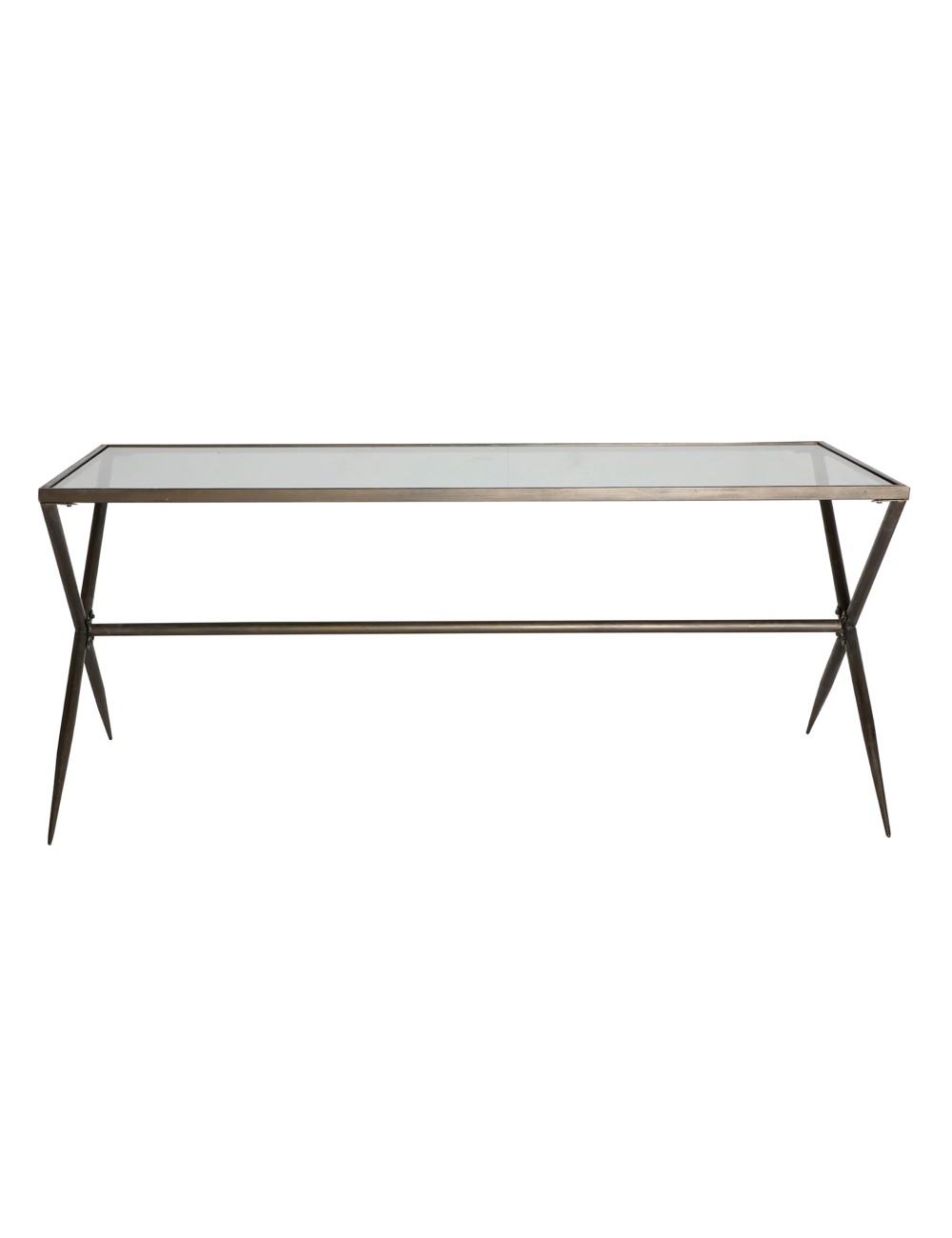 Mesa comedor rectangular alles, en color negro, de estilo industrial. Fabricado en hierro, combinado con vidrio. Producto desmontable.