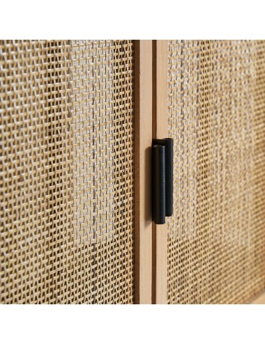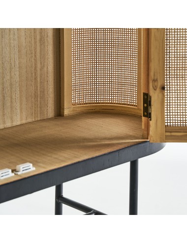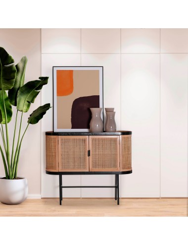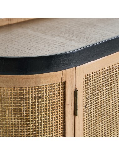 Consola oval beilen, en color negro/natural, de estilo nórdico. Fabricado en madera de pino, combinado con ratán y madera dm. Producto desmontable.