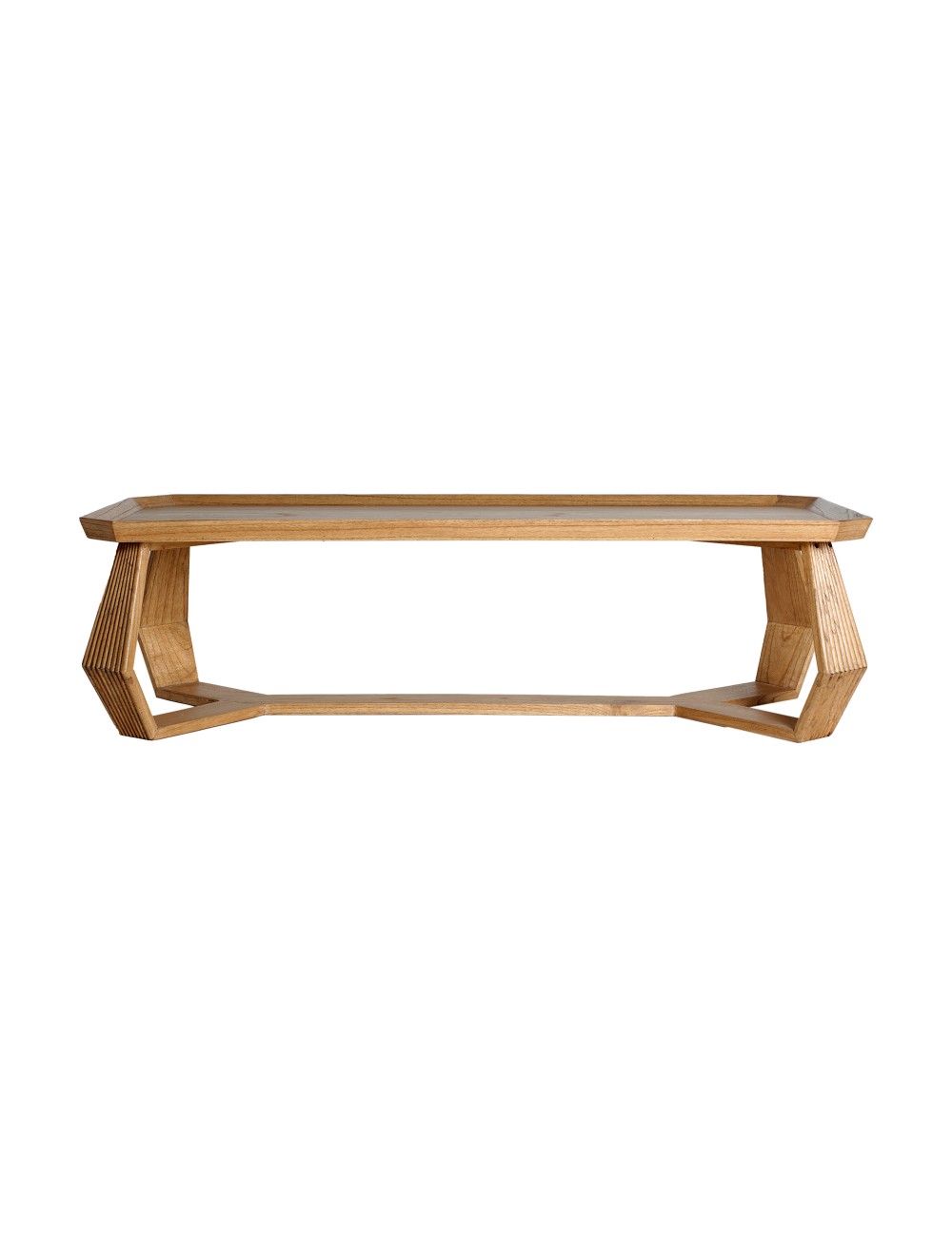 Mesa de centro rectangular bushey, en color marrón natural, de estilo colonial. Fabricado en madera mindi.