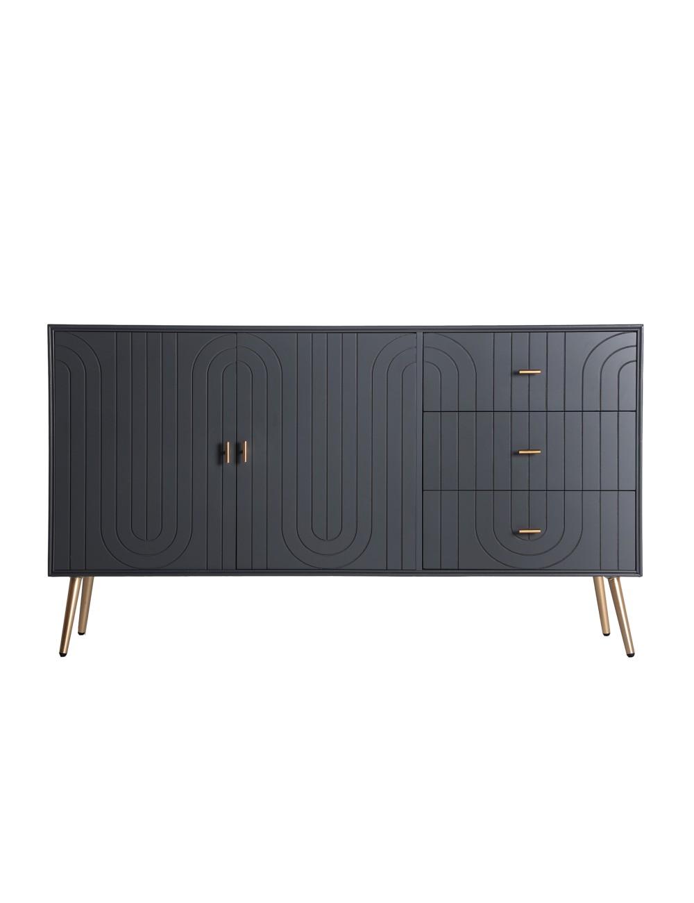 Aparador rectangular tremes, en color gris oscuro, de estilo art deco. Fabricado en madera de pino, combinado con hierro. Producto desmontable.