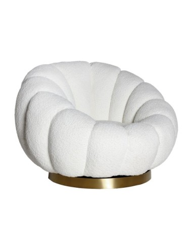 Sillón giratorio redondo bouclé crest de estilo art deco, fabricado en algodón bouclé en color blanco, combinado con acero en color oro. | Sillón redondo bouclé privas de estilo art deco, fabricado en algodón bouclé en color crema, combinado con madera dm. | Sillón giratorio Bouclé ayent de estilo art deco, fabricado en algodón bouclé en color terracota, combinado con acero en color negro. |