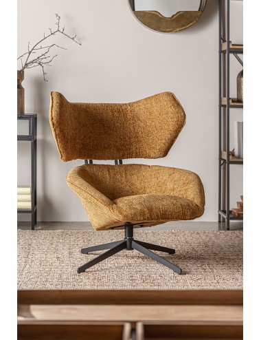 Sillón giratorio rectangular privas, en color ocre, de estilo contemporáneo. Fabricado en poliéster, combinado con hierro y espuma. Producto desmontable.