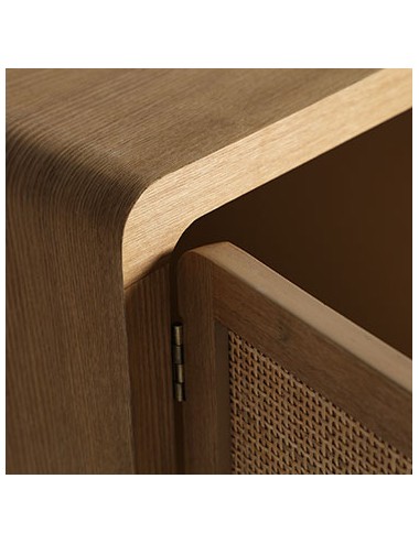 Mueble tv rectangular doazit, en color marrón claro, de estilo nórdico. Fabricado en madera de abeto, combinado con madera dm. Producto desmontable.