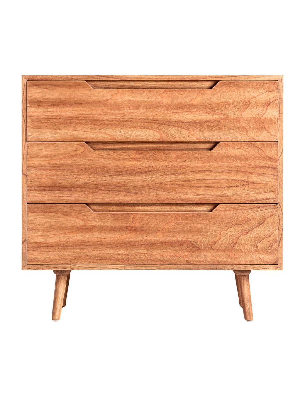 Cómoda cuadrada moss, en color marrón, de estilo nórdico. Fabricado en madera mindi. Producto desmontable.