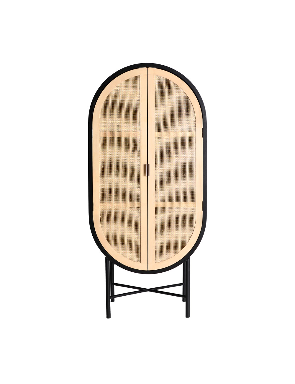 Armario rectangular beilen, en color negro/natural, de estilo nórdico. Fabricado en madera de pino, combinado con hierro. Producto desmontable.