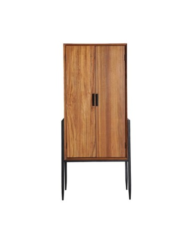 Armario rectangular lauris de estilo nórdico, fabricado en madera de abeto en color marrón, combinado con madera contrachapada y hierro en color negro con acabado mate.