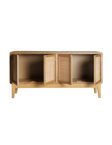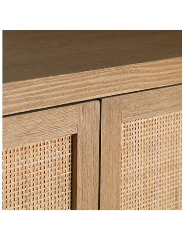 Aparador rectangular skagen, en color marrón claro, de estilo nórdico. Fabricado en madera dm, combinado con madera de paulownia. |