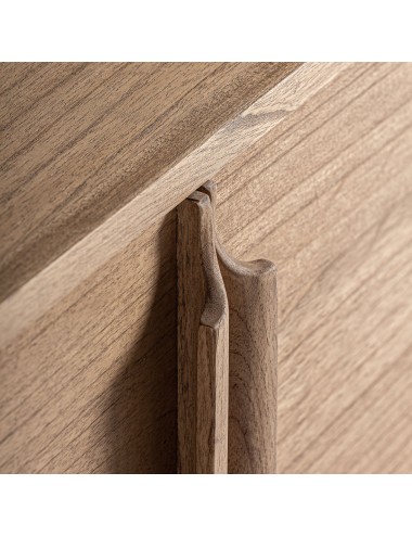 Mueble t. V. Rectangular slough, en color marrón, de estilo nórdico. Fabricado en madera mindi. Producto desmontable. |