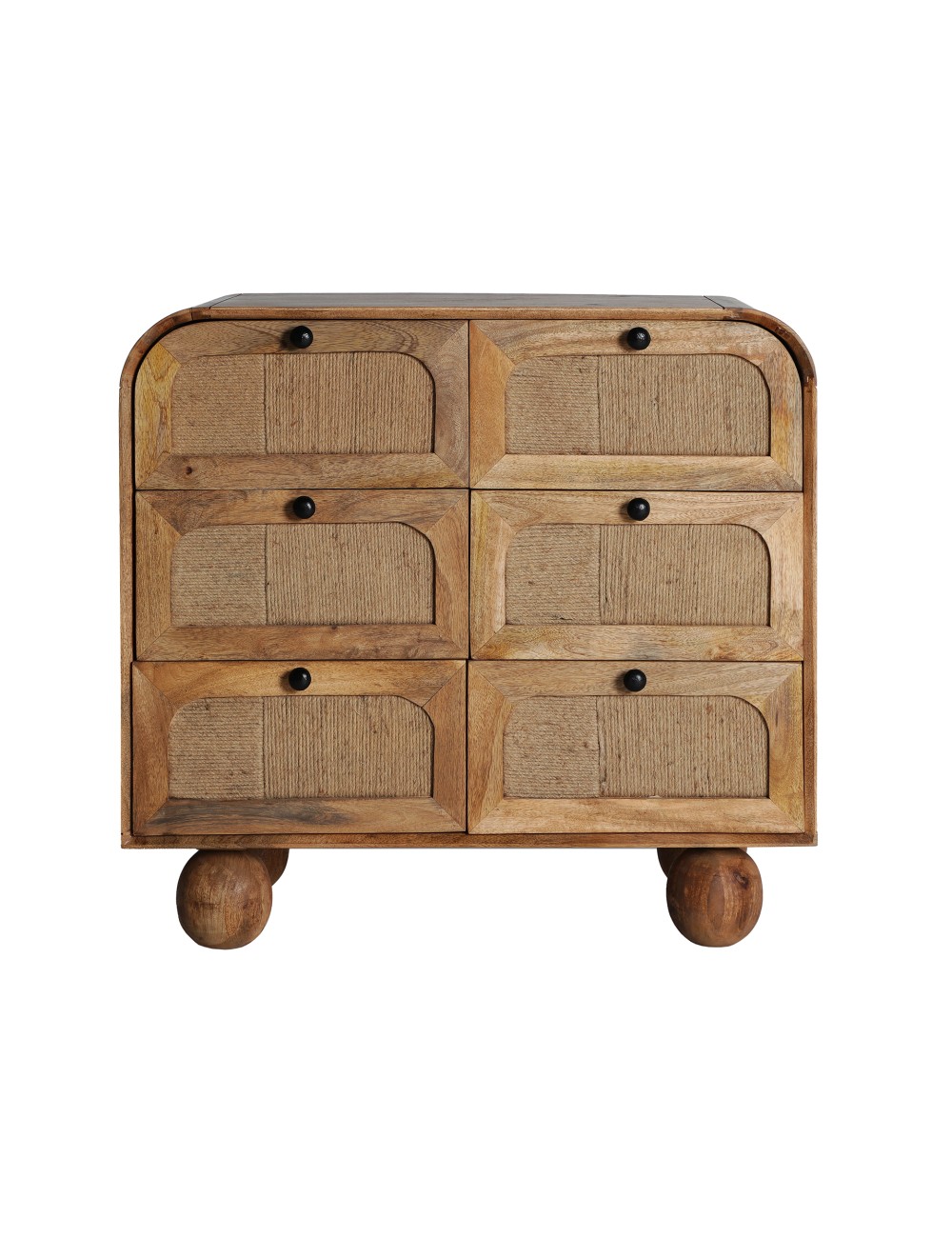 Cómoda vorey, en color marrón, de estilo contemporáneo. Fabricado en madera de mango, combinado con yute.