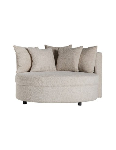 Sofá redondo merkem de estilo art deco, fabricado en algodón bouclé en color beige, combinado con madera de pino en color negro y poliéster.