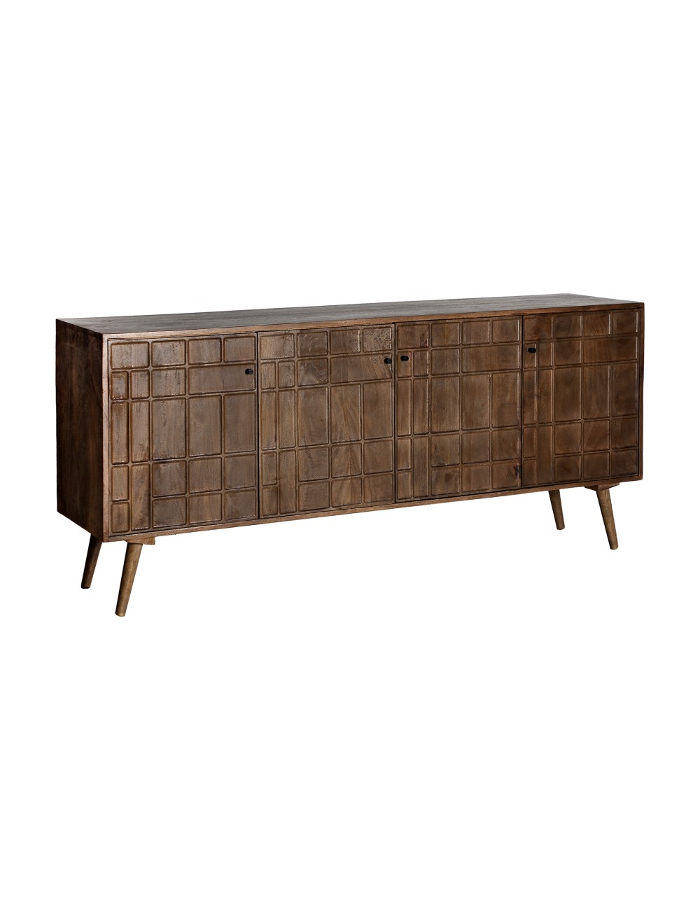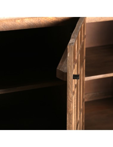 Aparador rectangular ruska, en color marrón, de estilo contemporáneo. Fabricado en madera de mango, combinado con madera dm. Producto desmontable. |