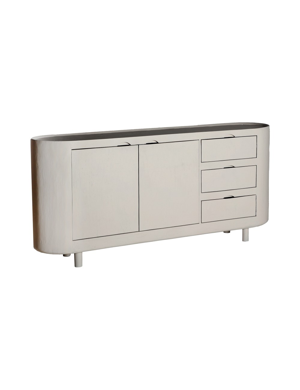 Aparador rectangular halsua, en color blanco roto, de estilo contemporáneo. Fabricado en madera de mango, combinado con madera dm. Producto desmontable.