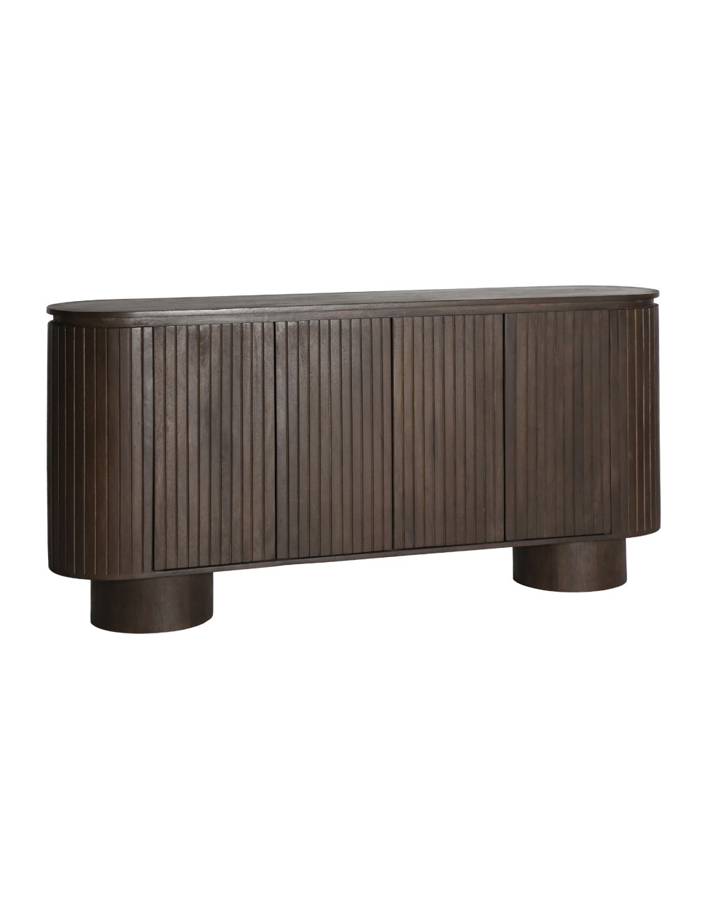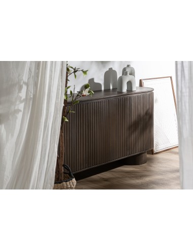 Aparador oval kolga, en color marrón, de estilo art deco. Fabricado en madera de mango. Producto desmontable. |
