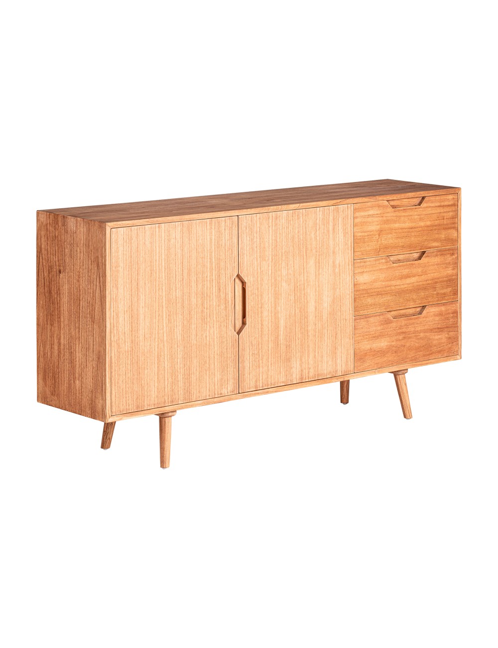 Aparador rectangular moss, en color marrón, de estilo nórdico. Fabricado en madera mindi. Producto desmontable.