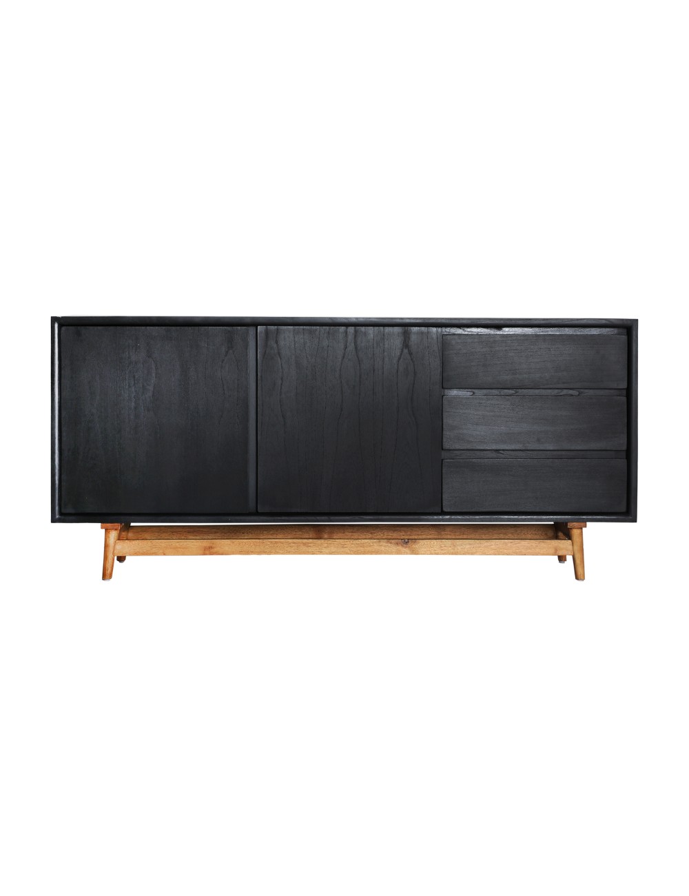 Aparador thiers, en color negro/marrón, de estilo nórdico. Fabricado en madera mindi, combinado con madera contrachapada.