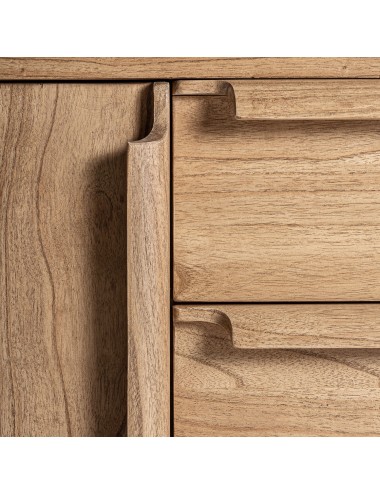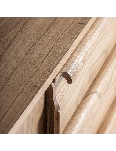 Aparador rectangular nyry, en color marrón, de estilo nórdico. Fabricado en madera mindi. Producto desmontable.