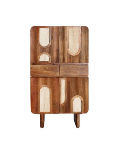 Armario claux de estilo contemporáneo, fabricado en madera de mango en color marrón, combinado con travertino en color blanco y madera dm.