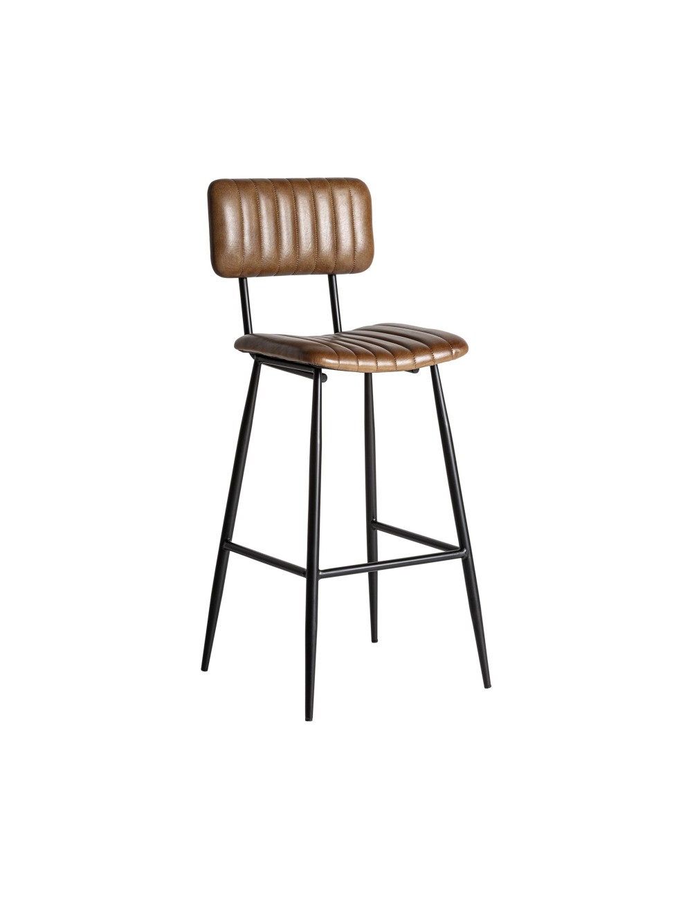 Taburete neguac, en color marrón, de estilo vintage. Fabricado en hierro, combinado con piel.