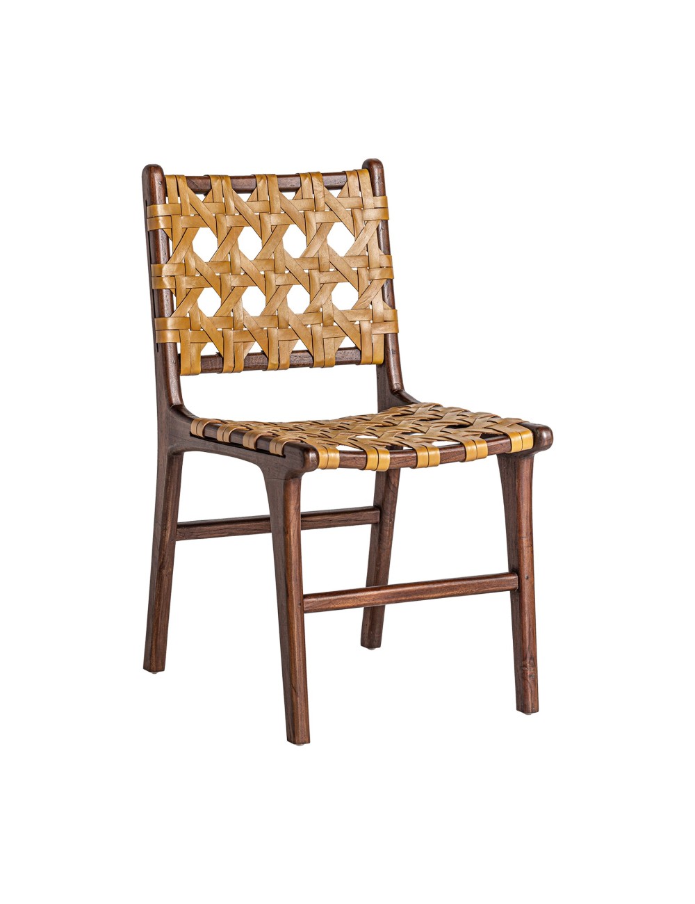 Silla strand, en color ocre, de estilo contemporáneo. Fabricado en madera de teka, combinado con piel.