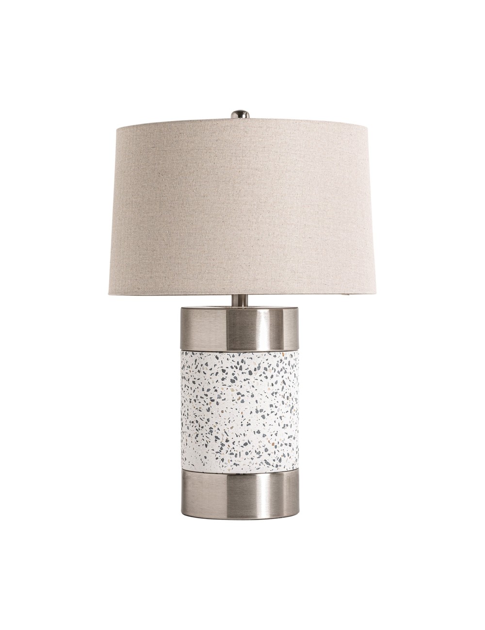 Lámpara de sobremesa, en color blanco/plata, de estilo art deco. Fabricado en piedra. Producto desmontable.