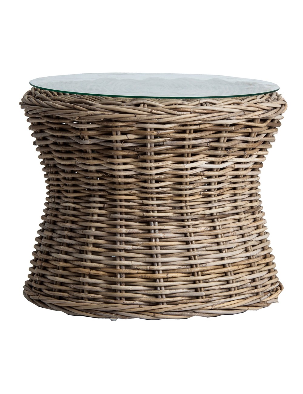 Mesa de centro chira, en color marrón, de estilo contemporáneo. Fabricado en ratán.